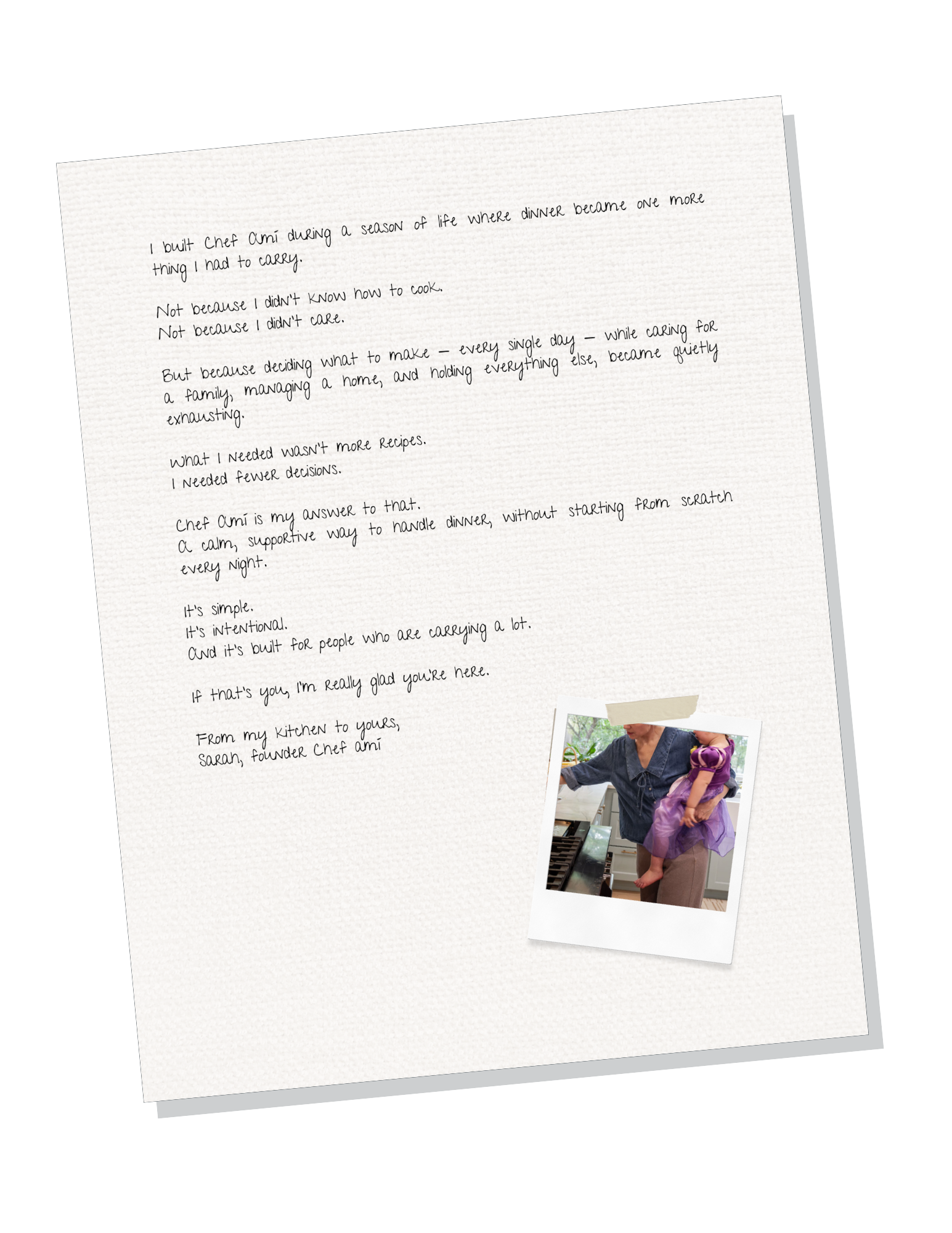 Chef Amí was created to support the people who carry dinner — mentally, emotionally, every day.